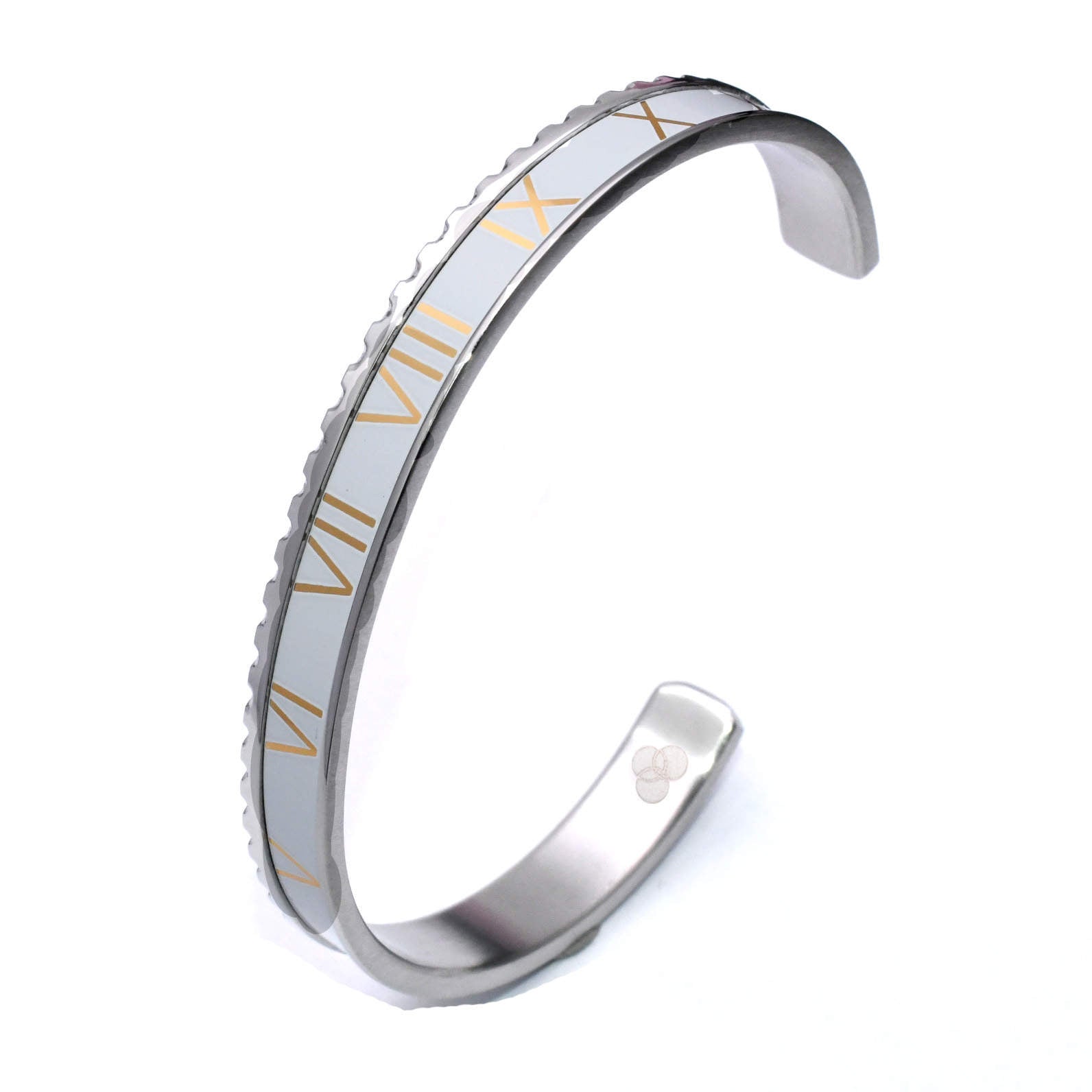 Das Roman Embrace Armband in elegantem Weiß ist ein zeitloses Schmuckstück, das römische Zahlen in Gold hervorgehoben in einem klassischen Design präsentiert. Hergestellt aus hochwertigem Edelstahl, bietet es eine robuste und dennoch stilvolle Ergänzung zu jedem Outfit. Perfekt für den täglichen Gebrauch oder besondere Anlässe, verleiht dieses Armband Ihrem Look eine historische Note.